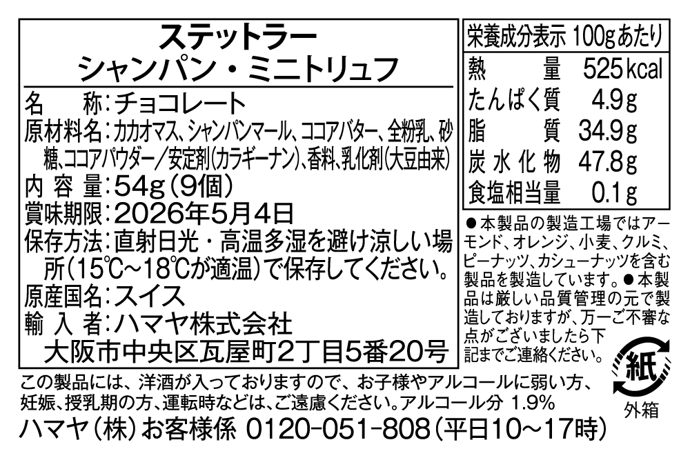 この製品には、洋酒が入っておりますので、お子様やアルコールに弱い方、妊娠、授乳期の方、運転時などは、ご遠慮ください。